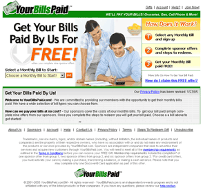 The YourBillsPaid site was a MetaReward incentive site. The site promoted paying a users monthly bill, cell phone, groceries, gas etc.. They wanted a look that was more professional than the other incentive sites they already had.