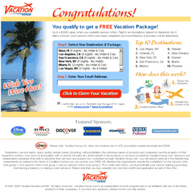 Vacation Venue was an incentive site for MetaReward that offered travel packages. The site has a look of some of the larger travel sites like Expedia, Hotwire and Travelocity. The main focus of the page was getting the user to select a package and submit their email address. A "how does it work" graphic was also included to give the user a visual idea of the process to get your vacation package.