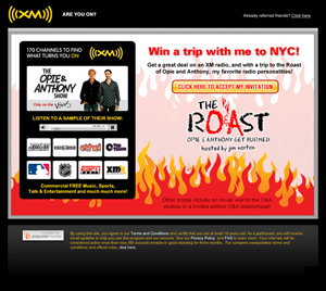 This was a part of XM Radio’s viral marketing program. I designed a micro site for the Opie & Anthony, where fans could invite their friends to try and win a trip to the Opie & Anthony Roast in New York City. The design plays up the “roasting/fire” theme throughout the process.